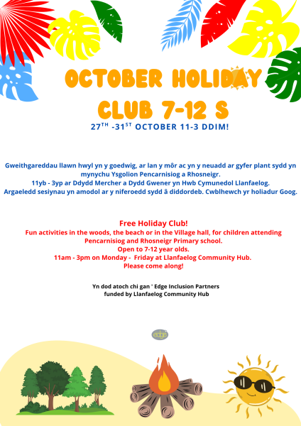 Free Holiday Club for 7-12s living in the Rhosneigr / Ty Croes / Llanfaelog / Pencarnisiog area!